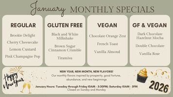 January Hours: Tuesday through Friday 10AM - 5:30PM | Saturday 10AM - 5PM | Closed Sunday & Monday